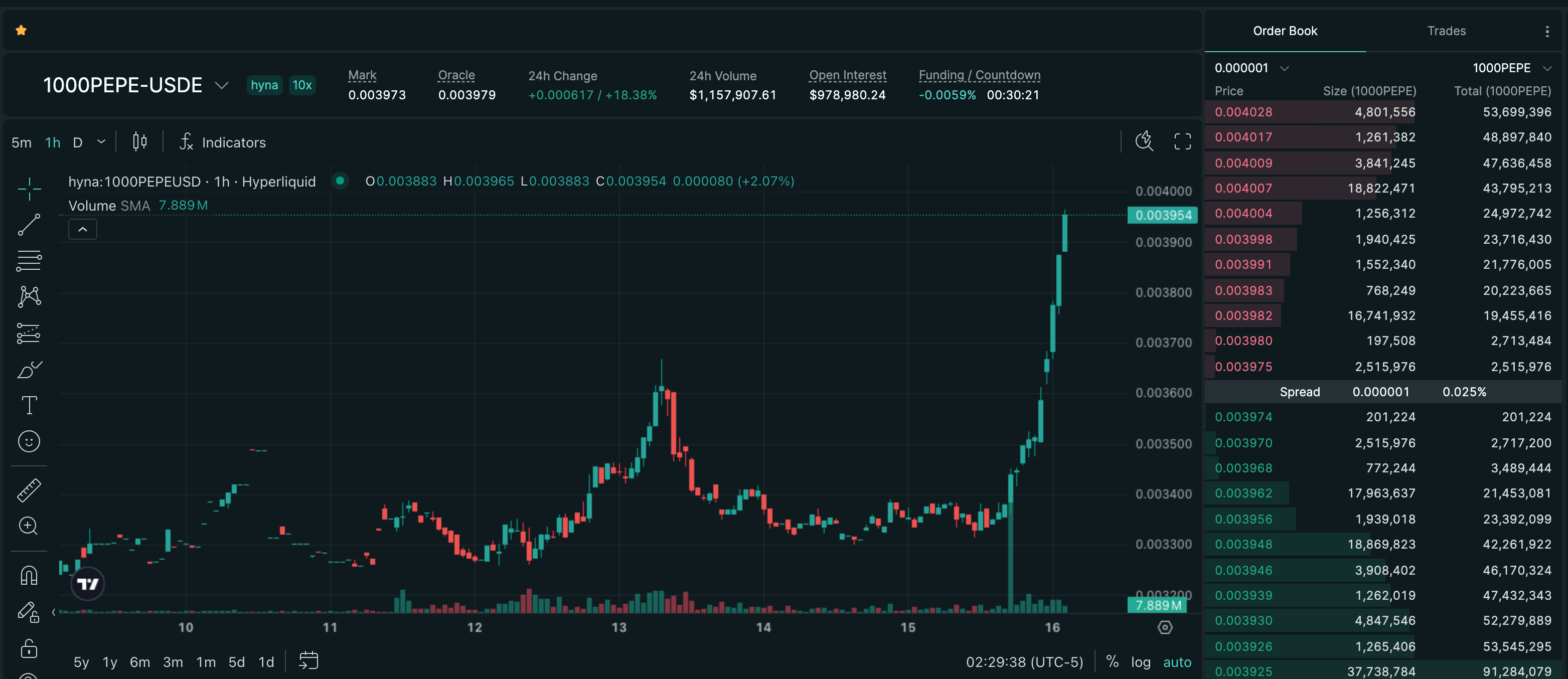 Trade 1000PEPE on Hyperliquid with up to 10x leverage.