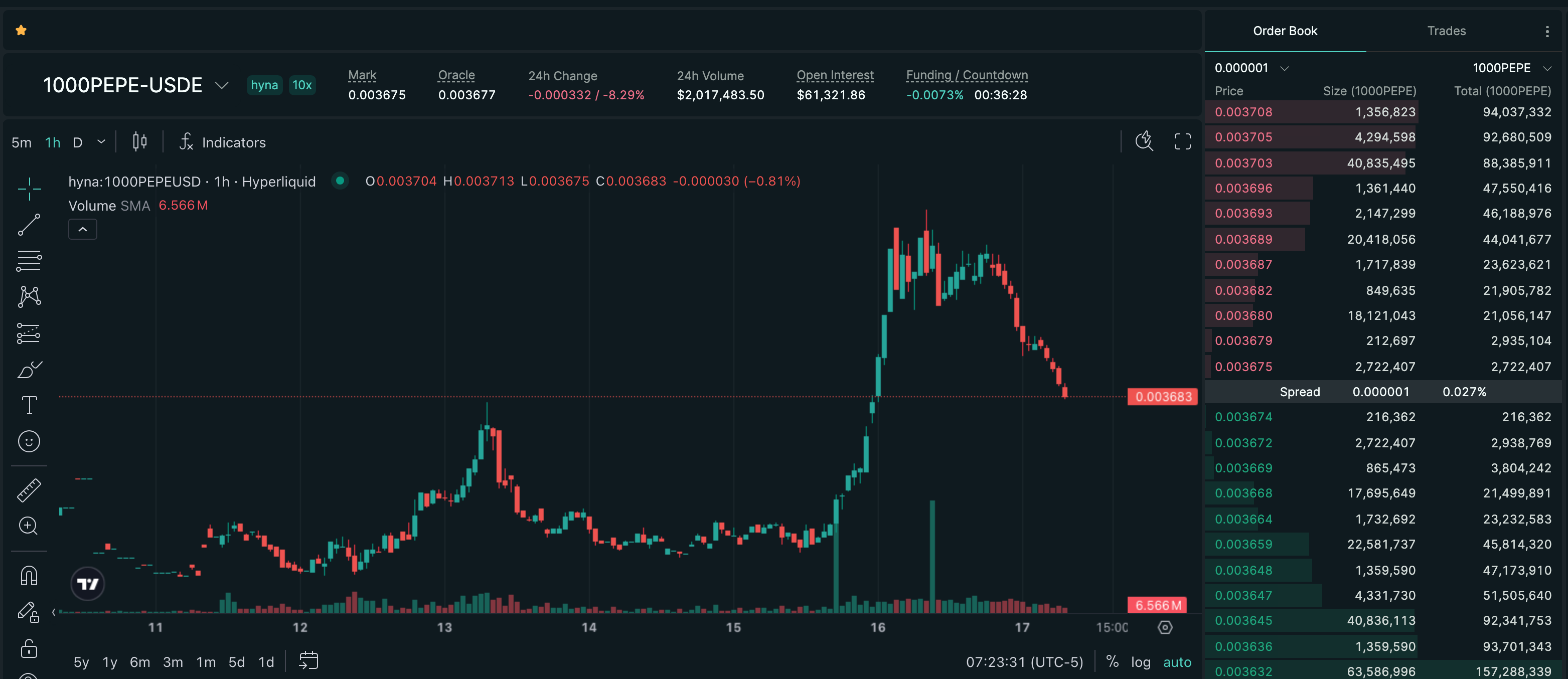 Trade 1000PEPE on Hyperliquid with up to 10x leverage.