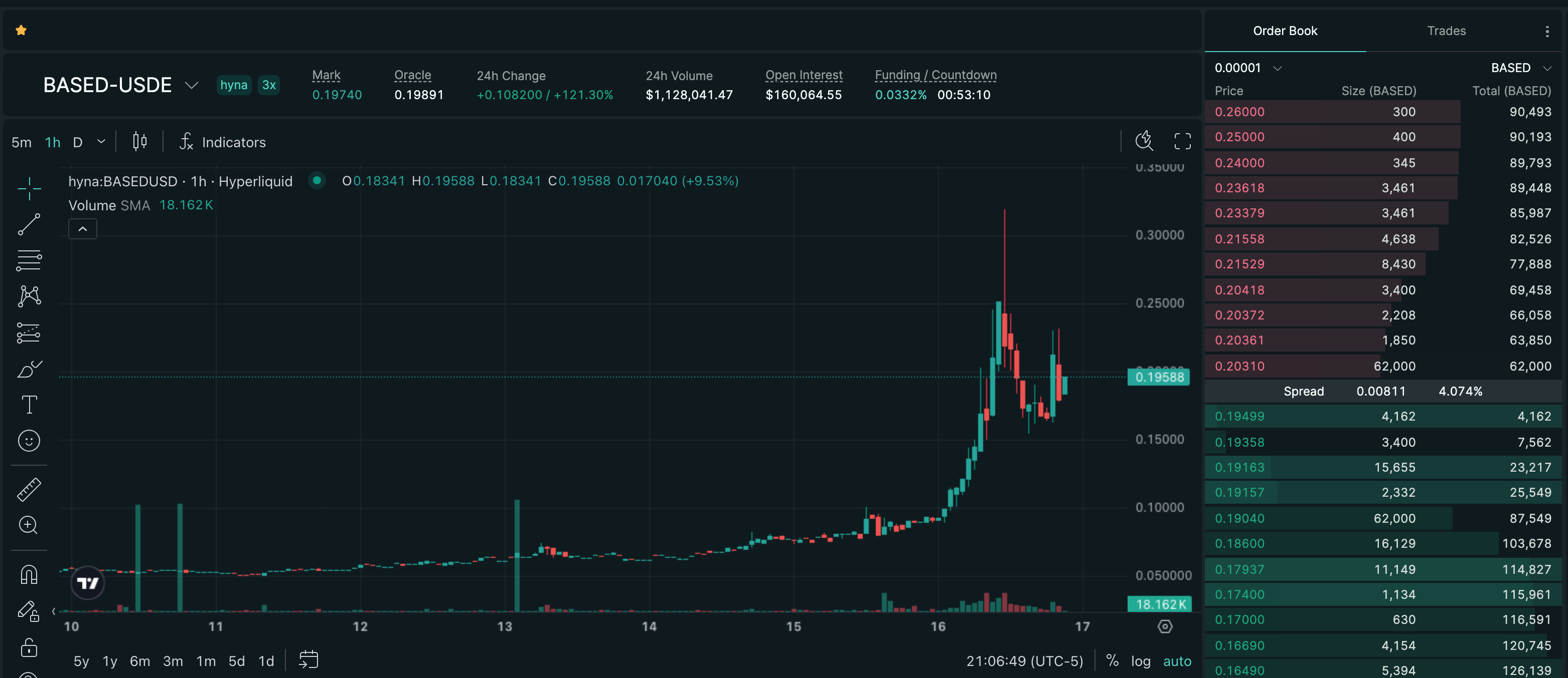 Trade BASED on Hyperliquid with up to 3x leverage.