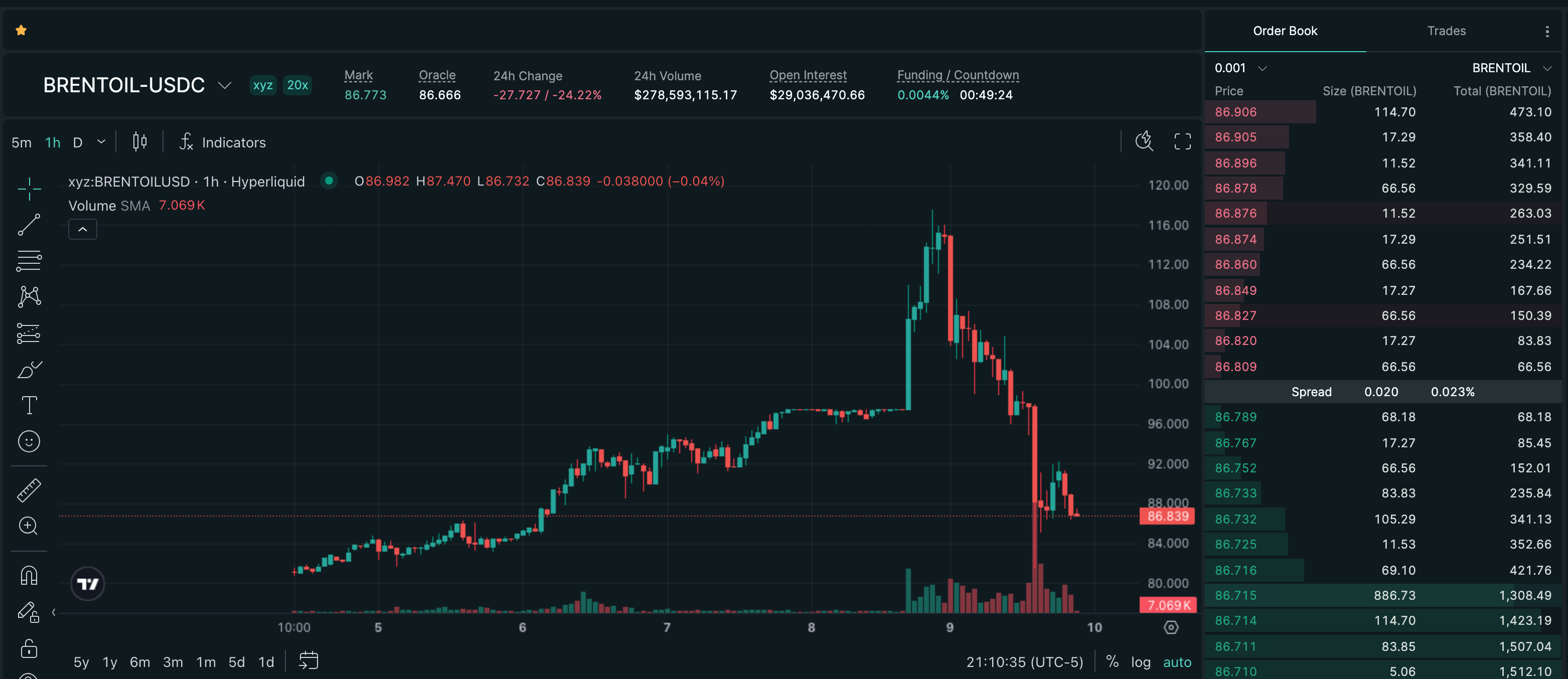Trade BRENTOIL on Hyperliquid with up to 20x leverage.