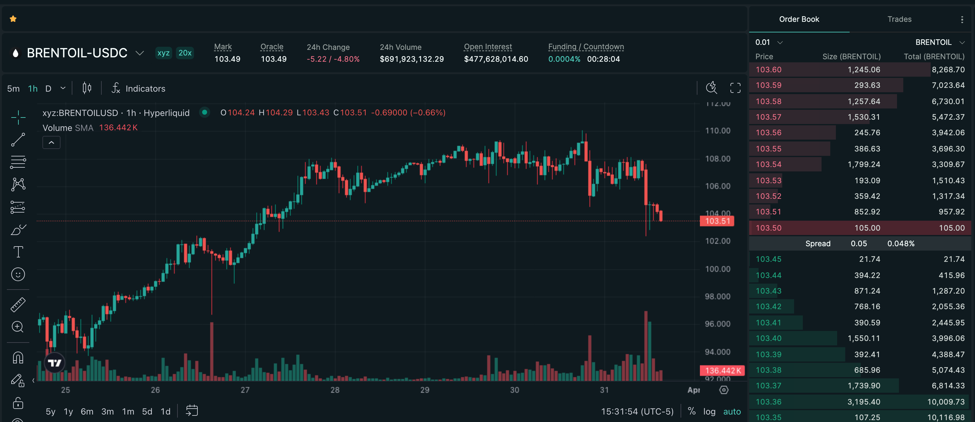 Trade BRENTOIL on Hyperliquid with up to 20x leverage.