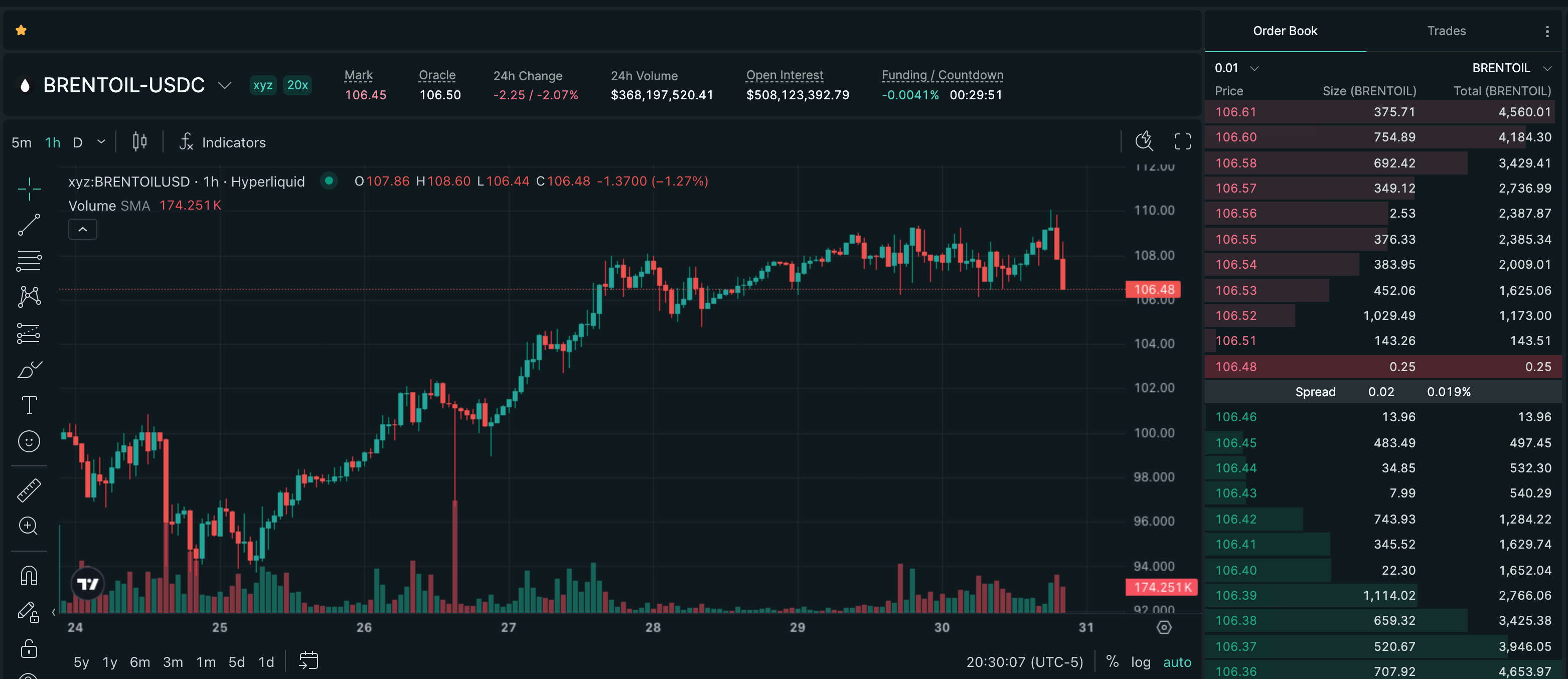 Trade BRENTOIL on Hyperliquid with up to 20x leverage.