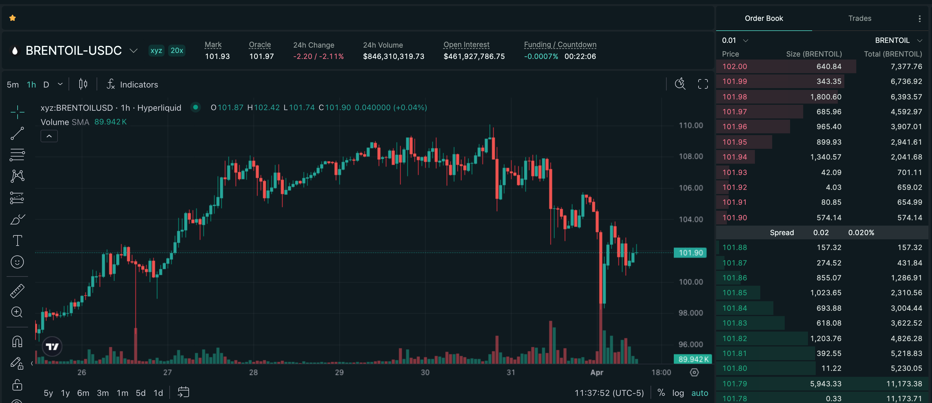 Trade BRENTOIL on Hyperliquid with up to 20x leverage.