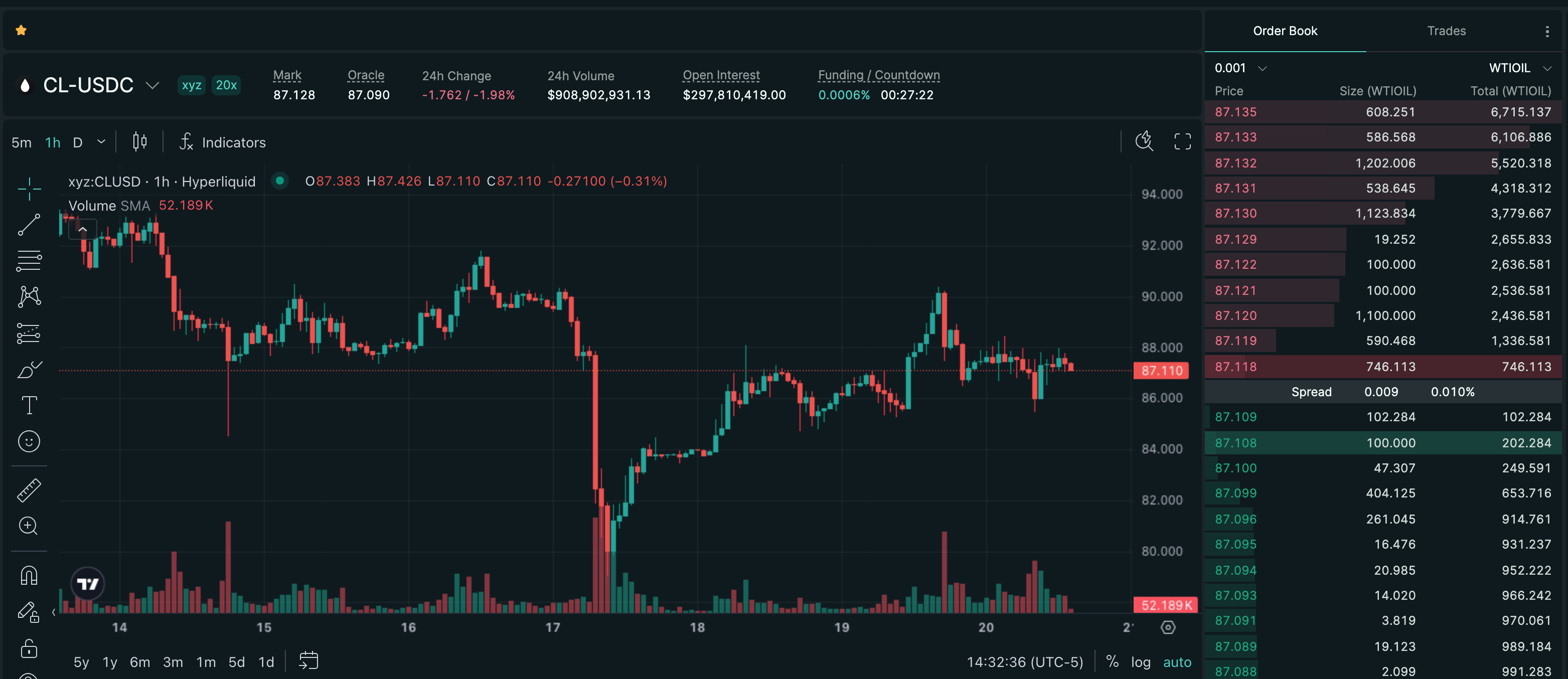 Trade CL on Hyperliquid with up to 20x leverage.