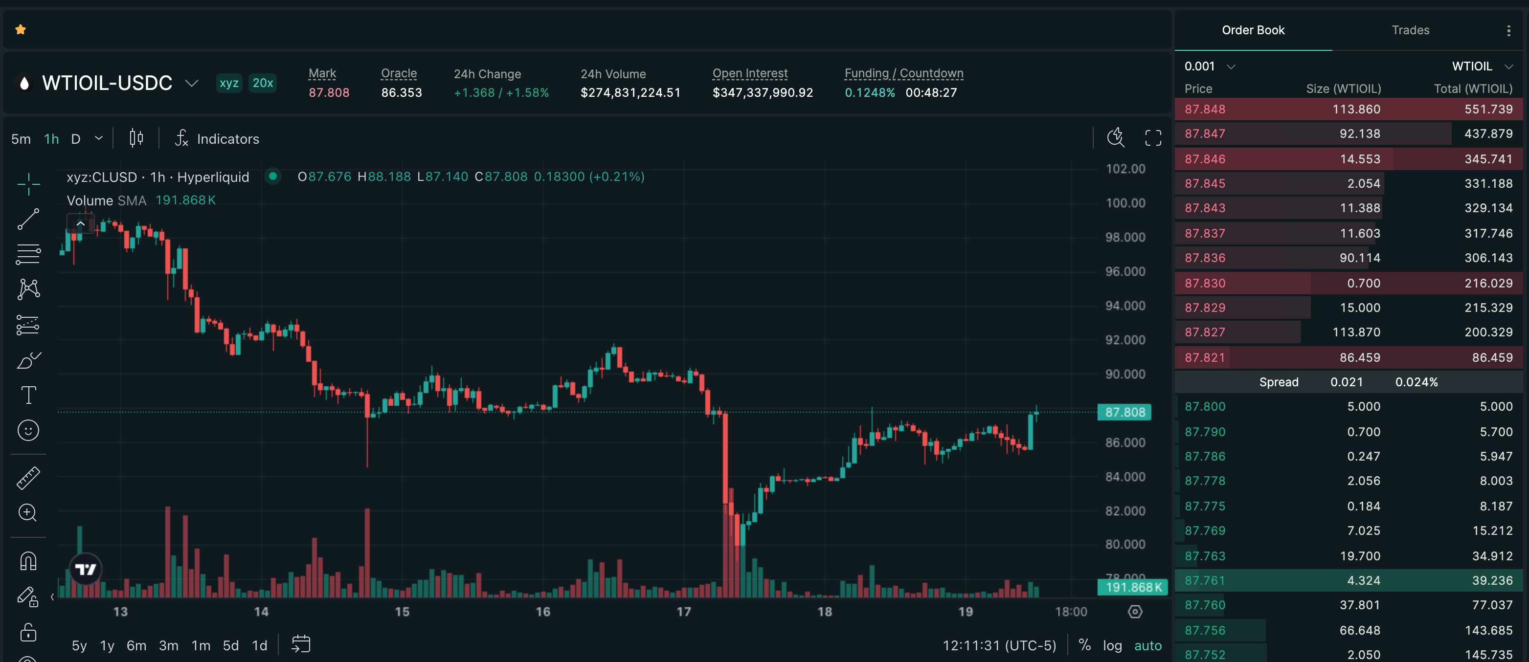 CL is +3.58% to $88.04 over the last 16 hours on Hyperliquid, a clean continuation of the bid that started when Iran's Revolutionary Guard reversed Friday's 'Hormuz open' declaration and shut the strait again. That $88 print is a full round trip from the ~$83.85 settle on April 17, when Foreign Minister Araghchi's statement that the waterway was 'completely open' triggered a near-12% single-session puke. Within 24 hours the IRGC declared the strait closed again 'until the US lifts its blockade,' and Iranian gunboats opened fire on the Indian-flagged Sanmar Herald mid-transit despite radio clearance. The market is not treating that as a one-off — it's treating it as the ground truth for what April 21 looks like if weekend diplomacy doesn't land.