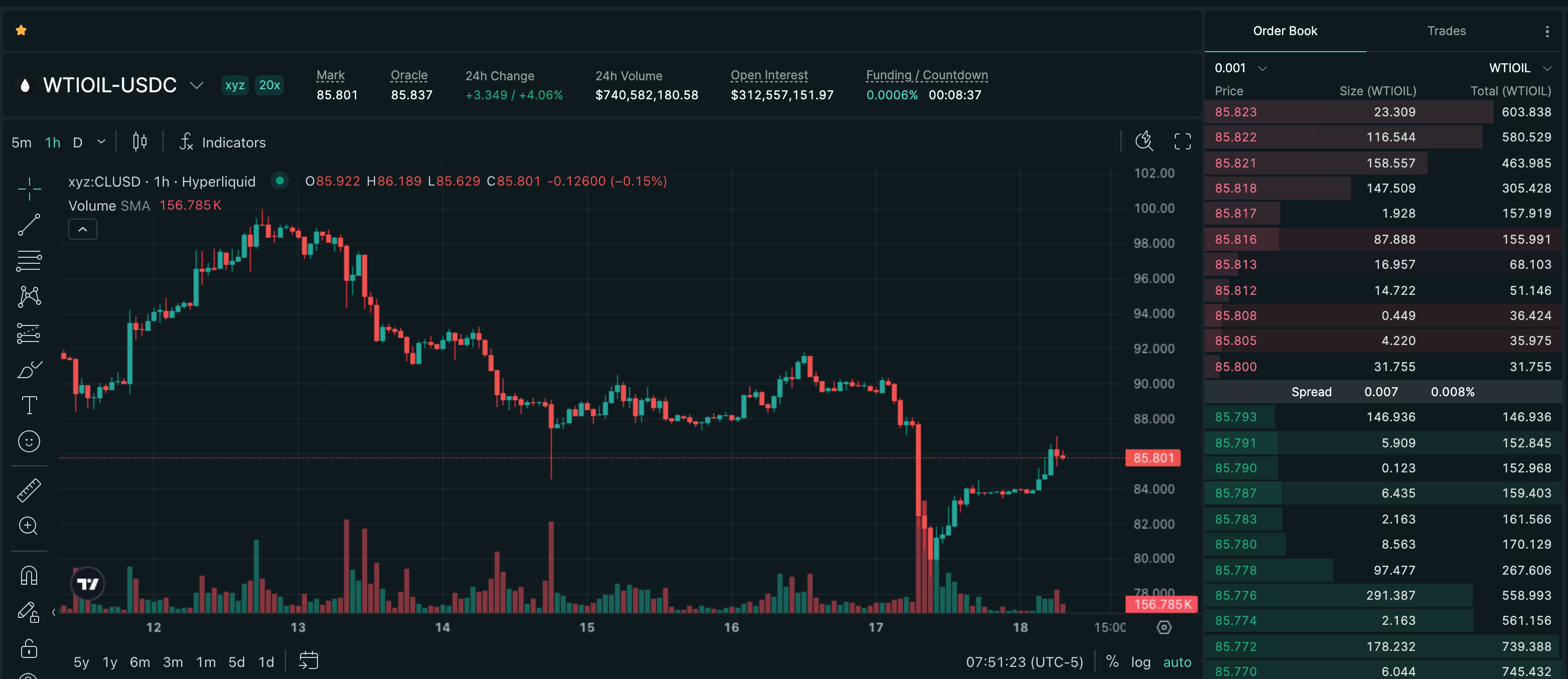 Trade CL on Hyperliquid with up to 20x leverage.