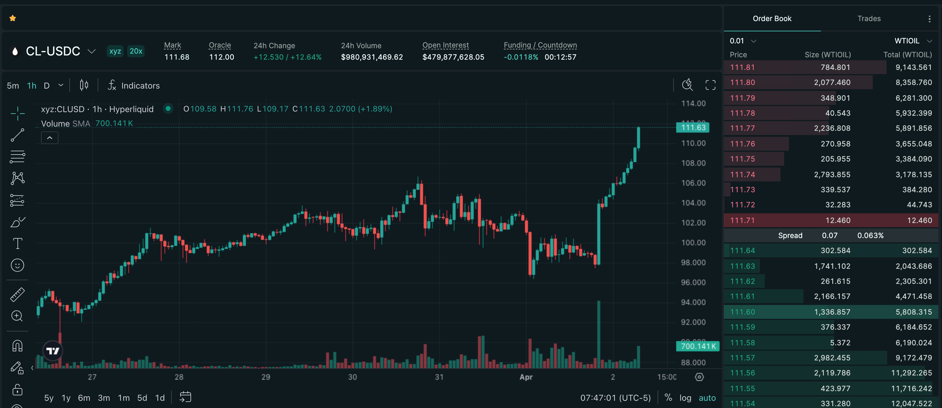 Trade CL on Hyperliquid with up to 20x leverage.