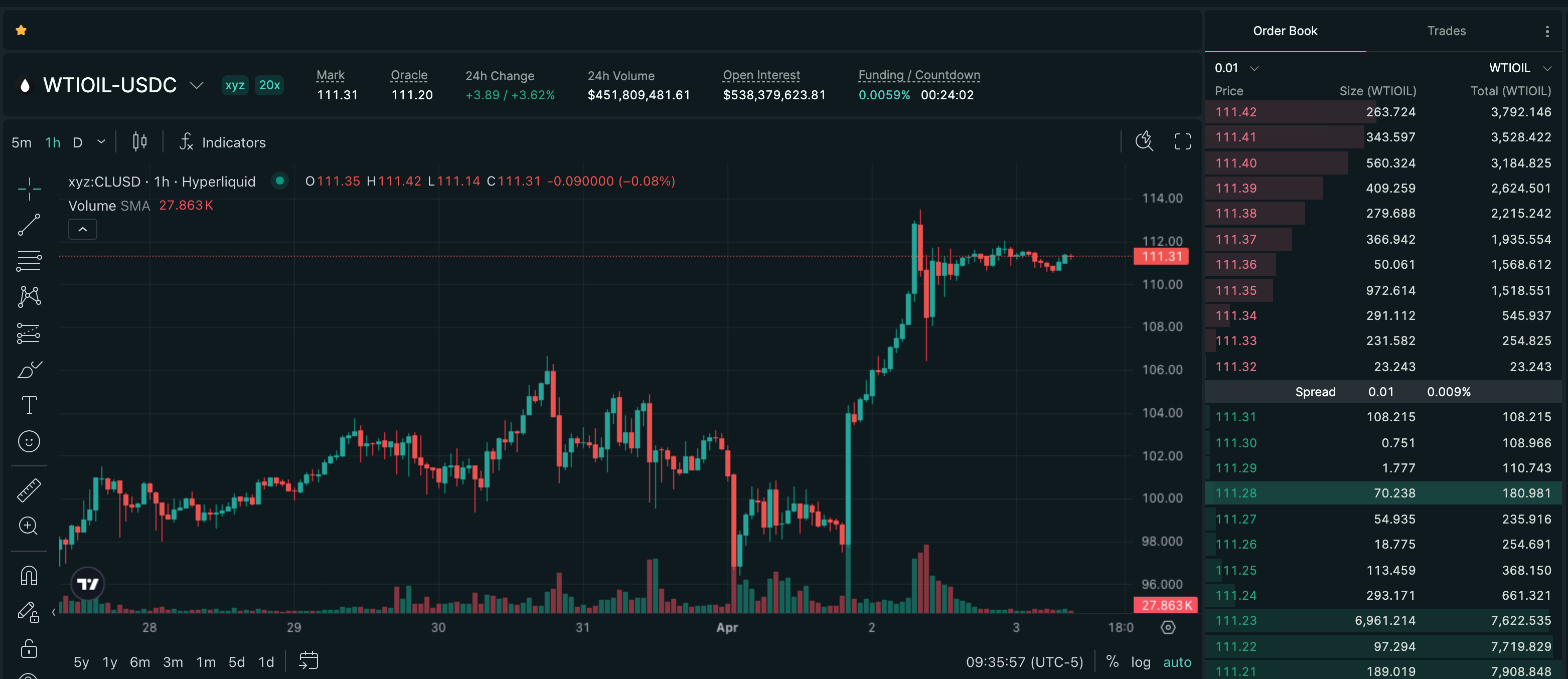 Trade CL on Hyperliquid with up to 20x leverage.
