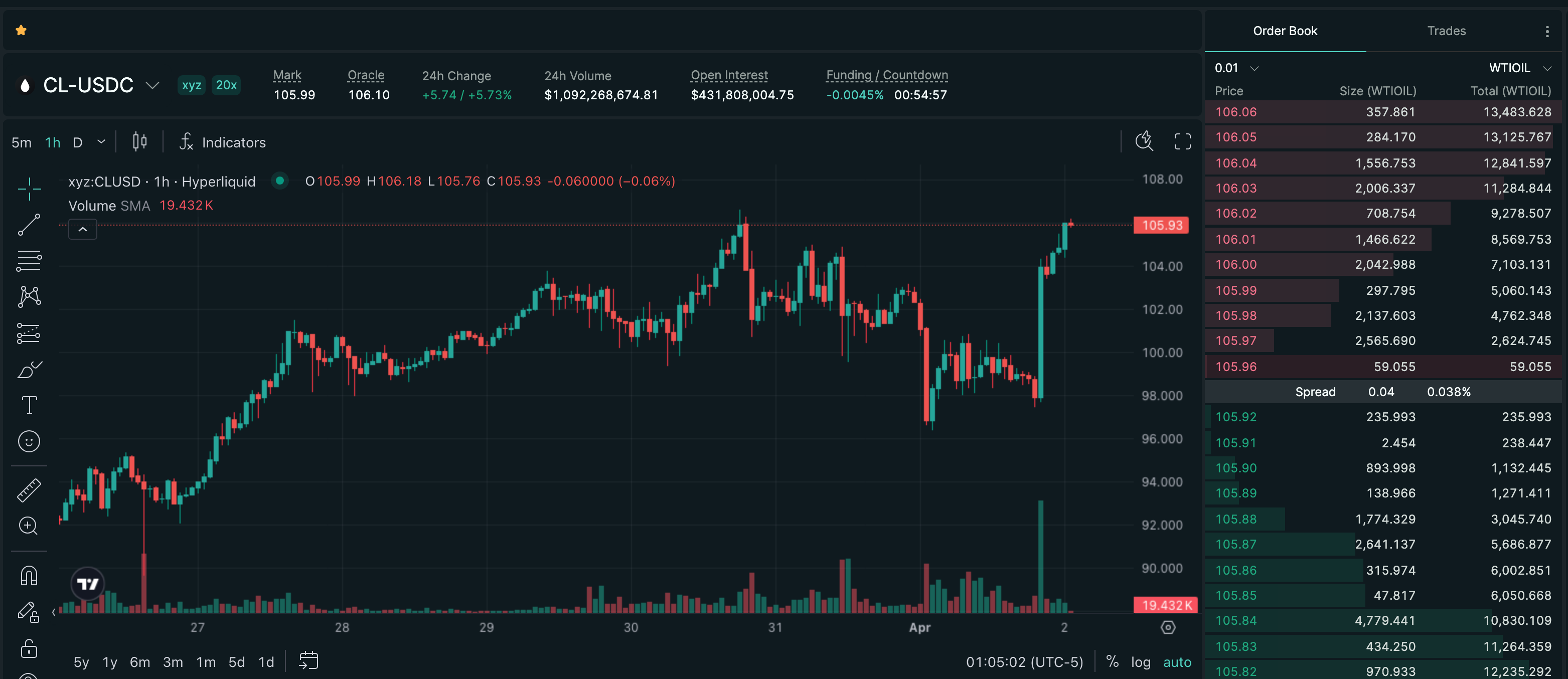 Trade CL on Hyperliquid with up to 20x leverage.