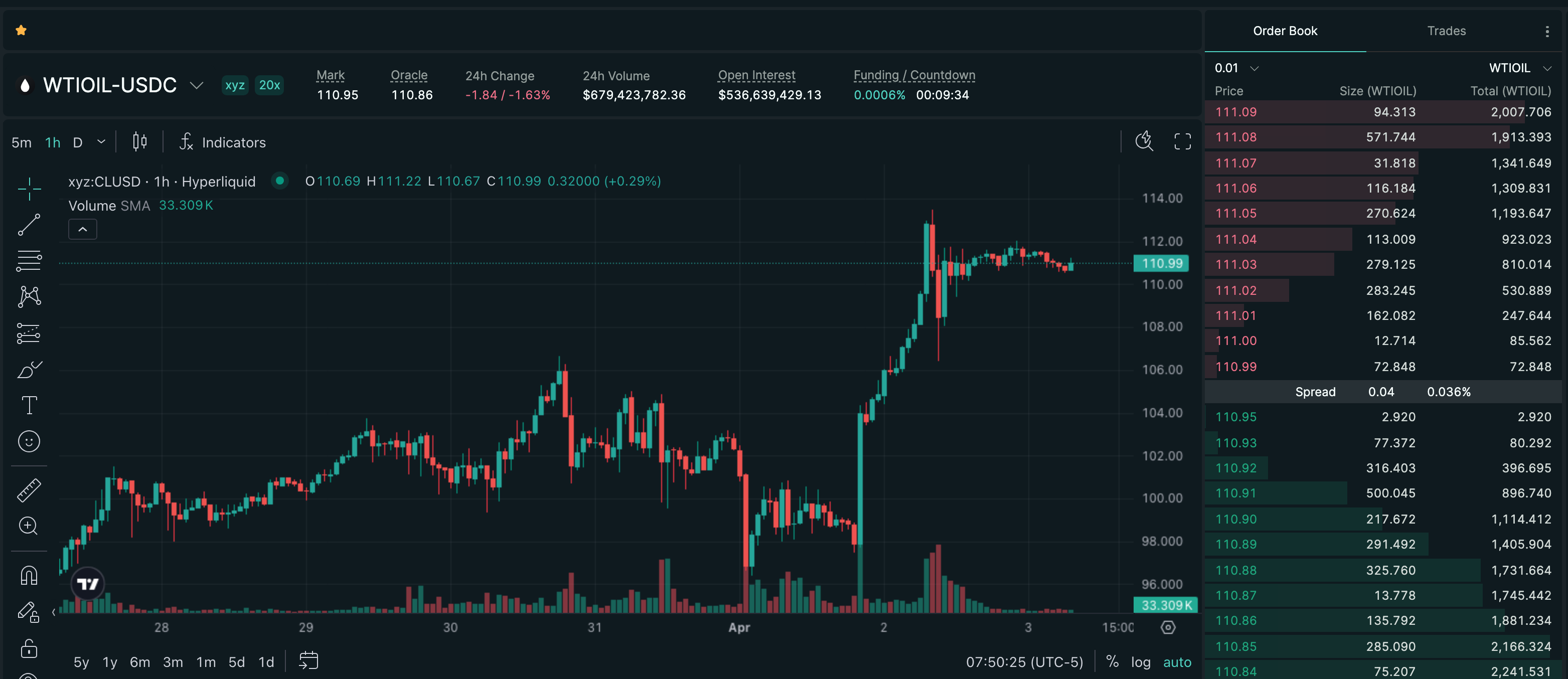 Trade CL on Hyperliquid with up to 20x leverage.