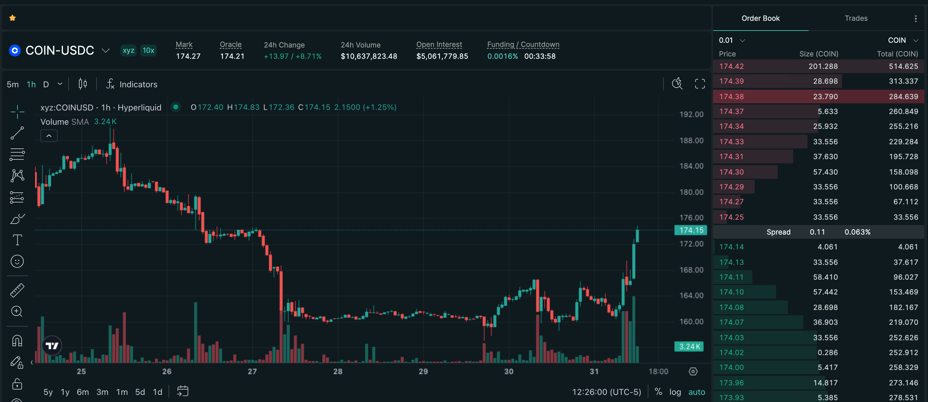 Trade COIN on Hyperliquid with up to 10x leverage.