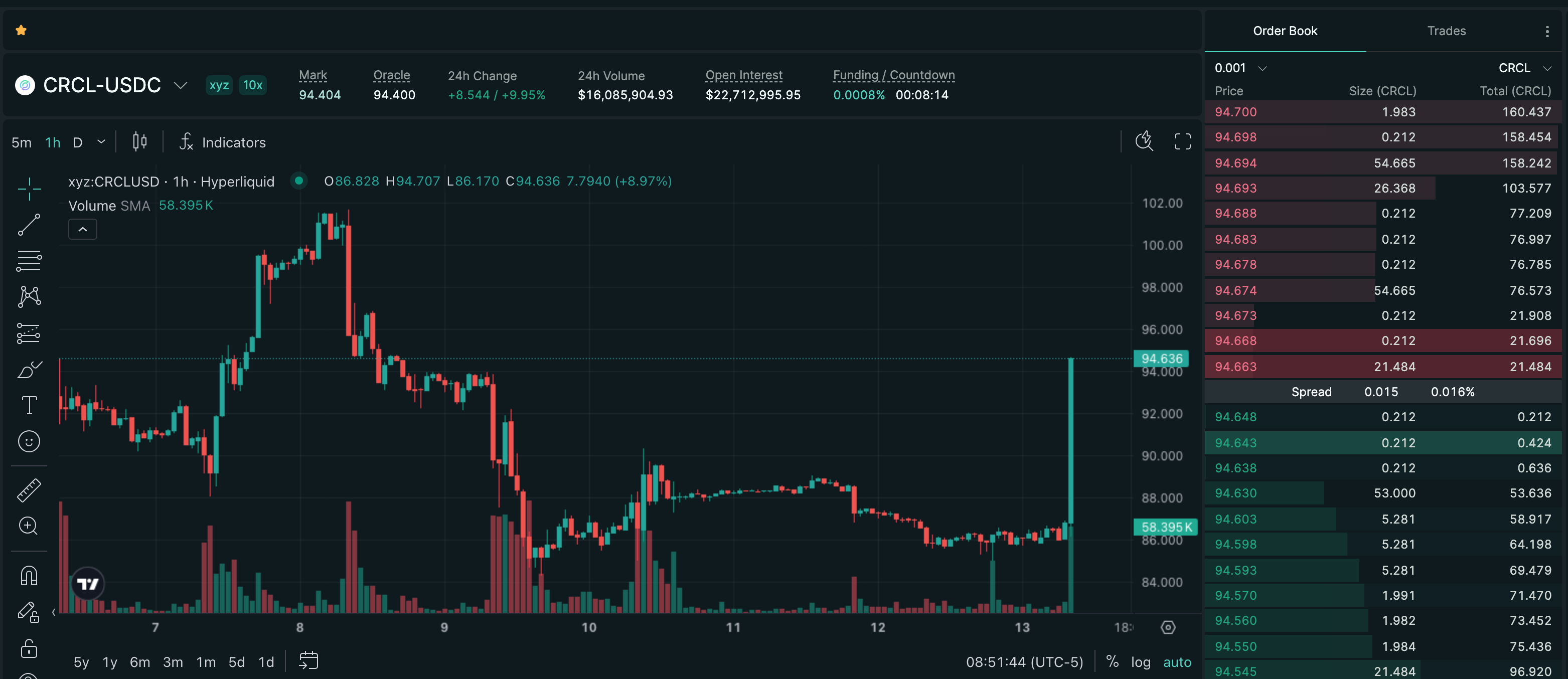 Trade CRCL on Hyperliquid with up to 10x leverage.