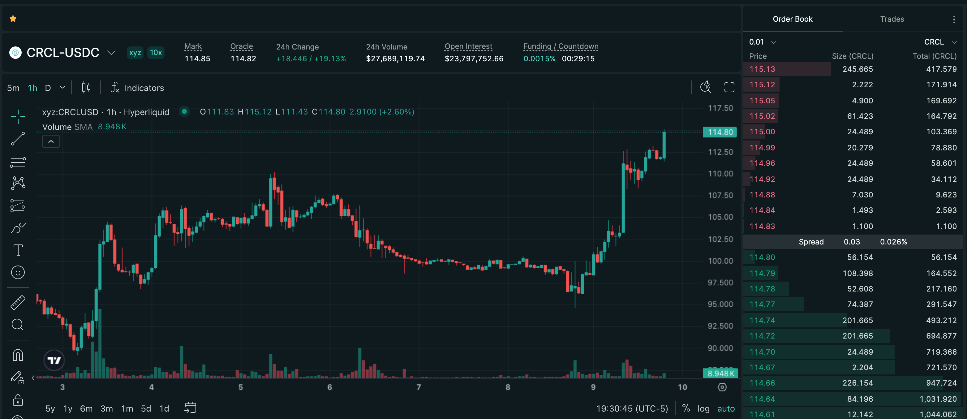 Trade CRCL on Hyperliquid with up to 10x leverage.