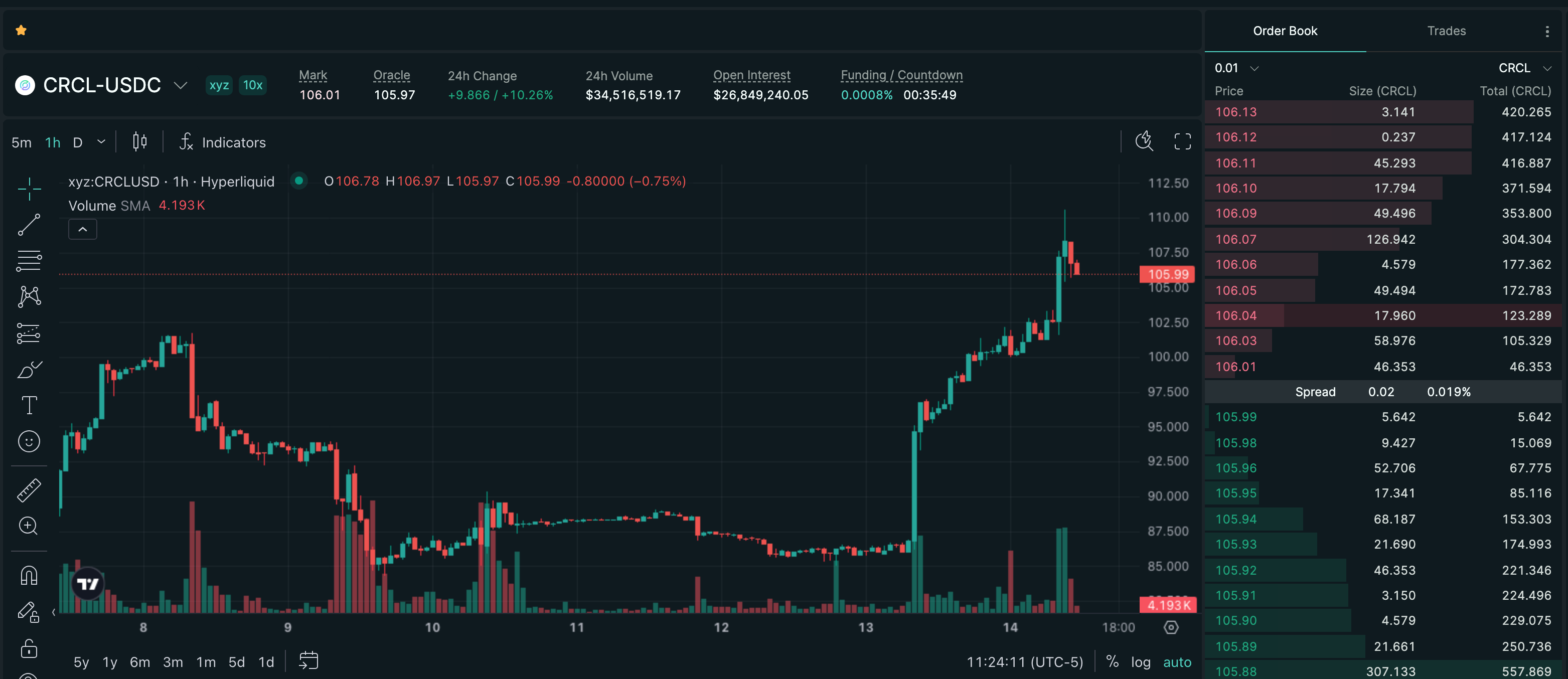 Trade CRCL on Hyperliquid with up to 10x leverage.