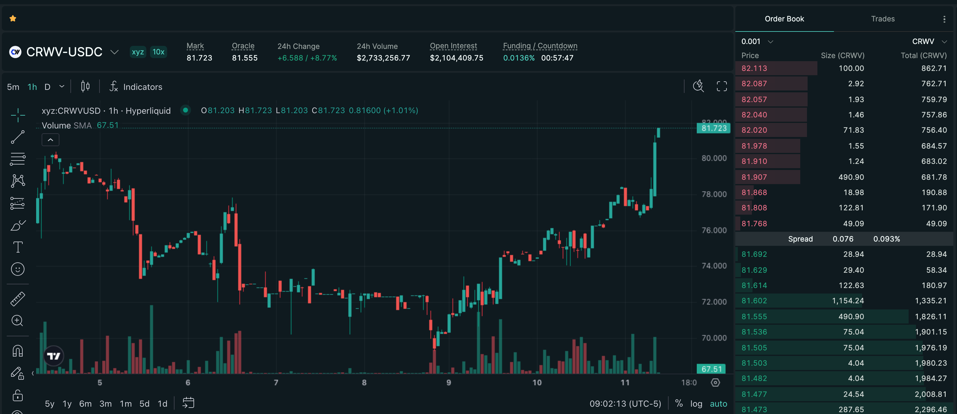 Trade CRWV on Hyperliquid with up to 10x leverage.