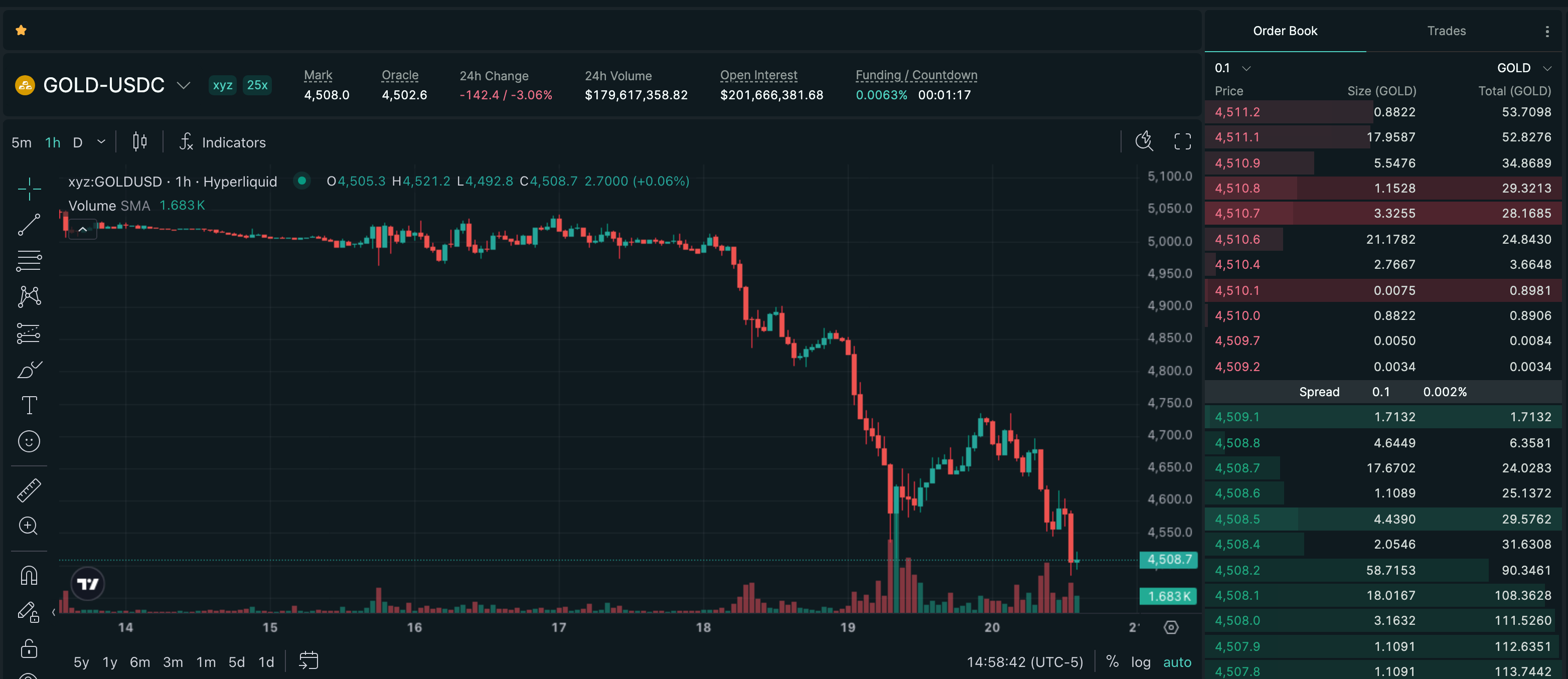 Trade GOLD on Hyperliquid with up to 25x leverage.