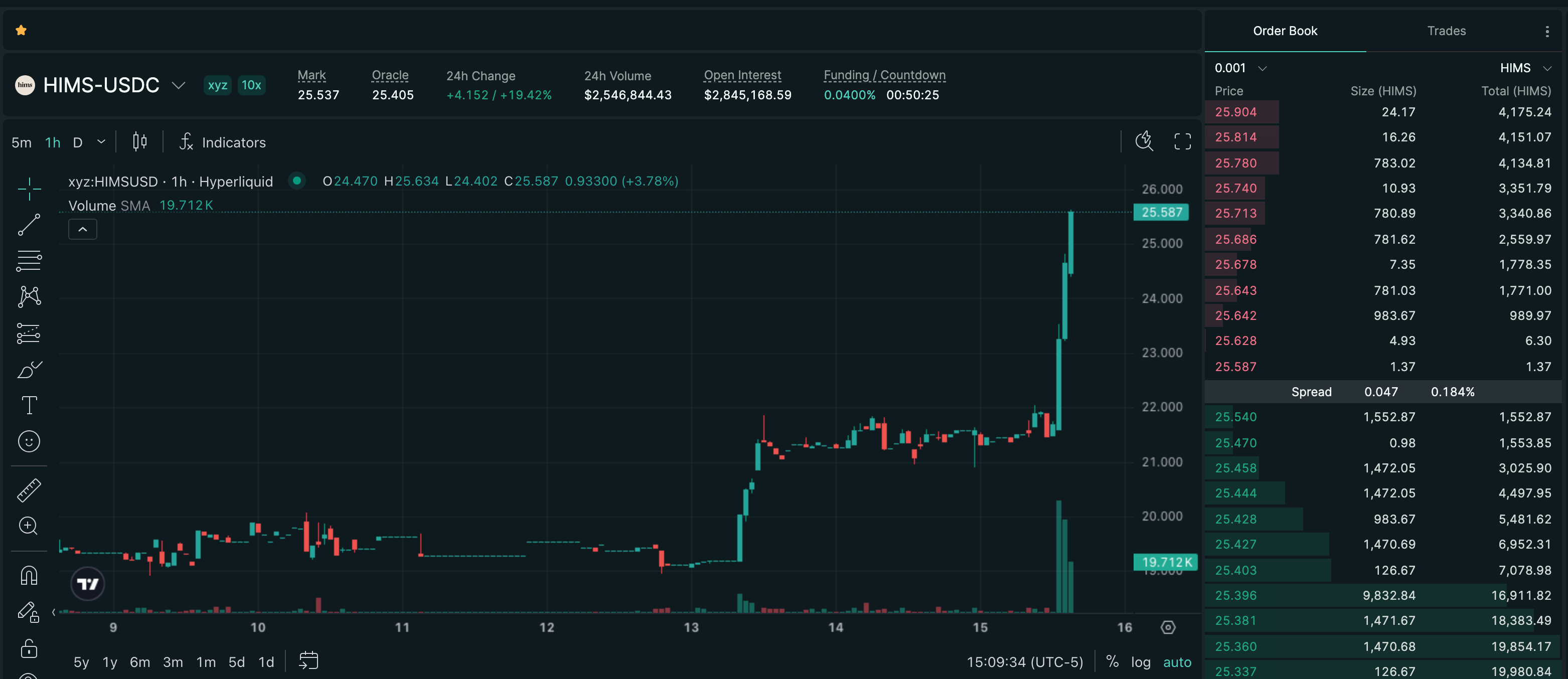 Trade HIMS on Hyperliquid with up to 10x leverage.