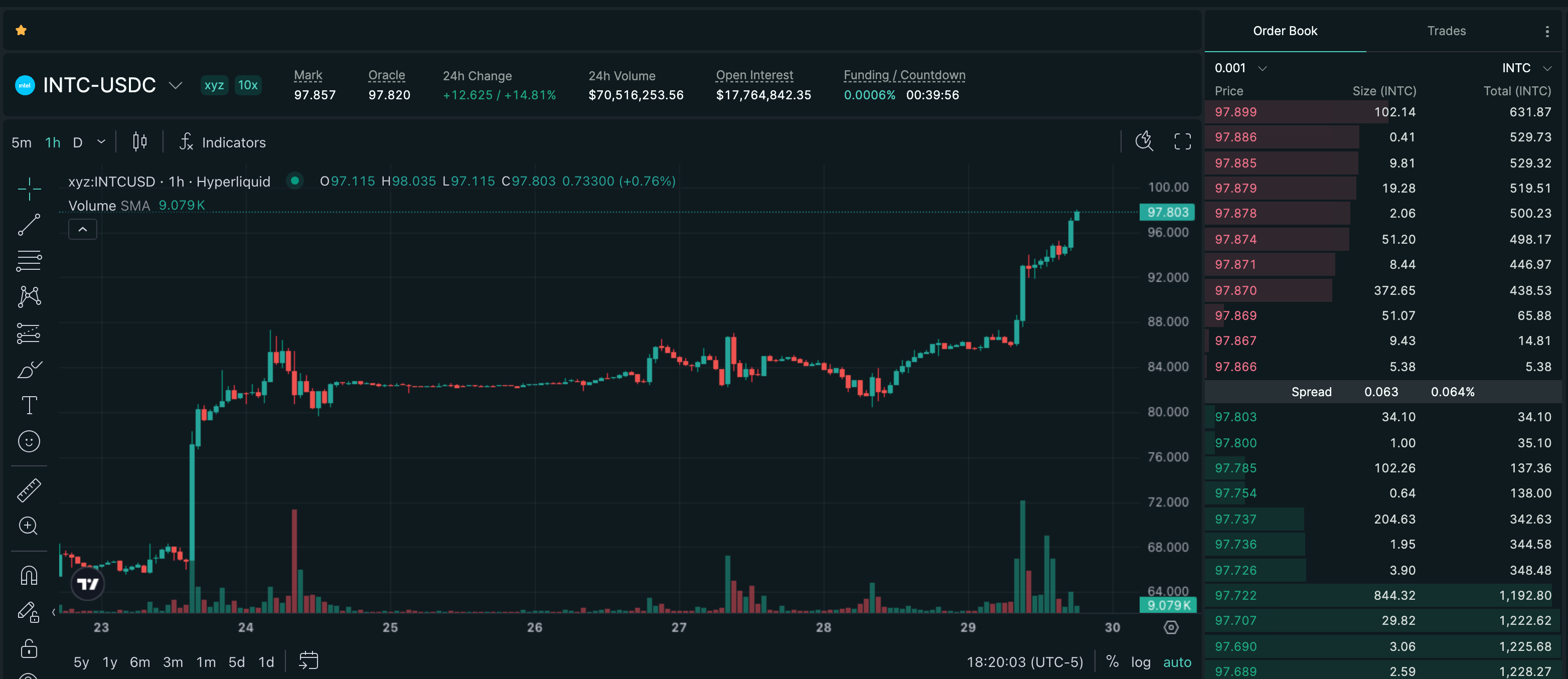 Trade INTC on Hyperliquid with up to 10x leverage.