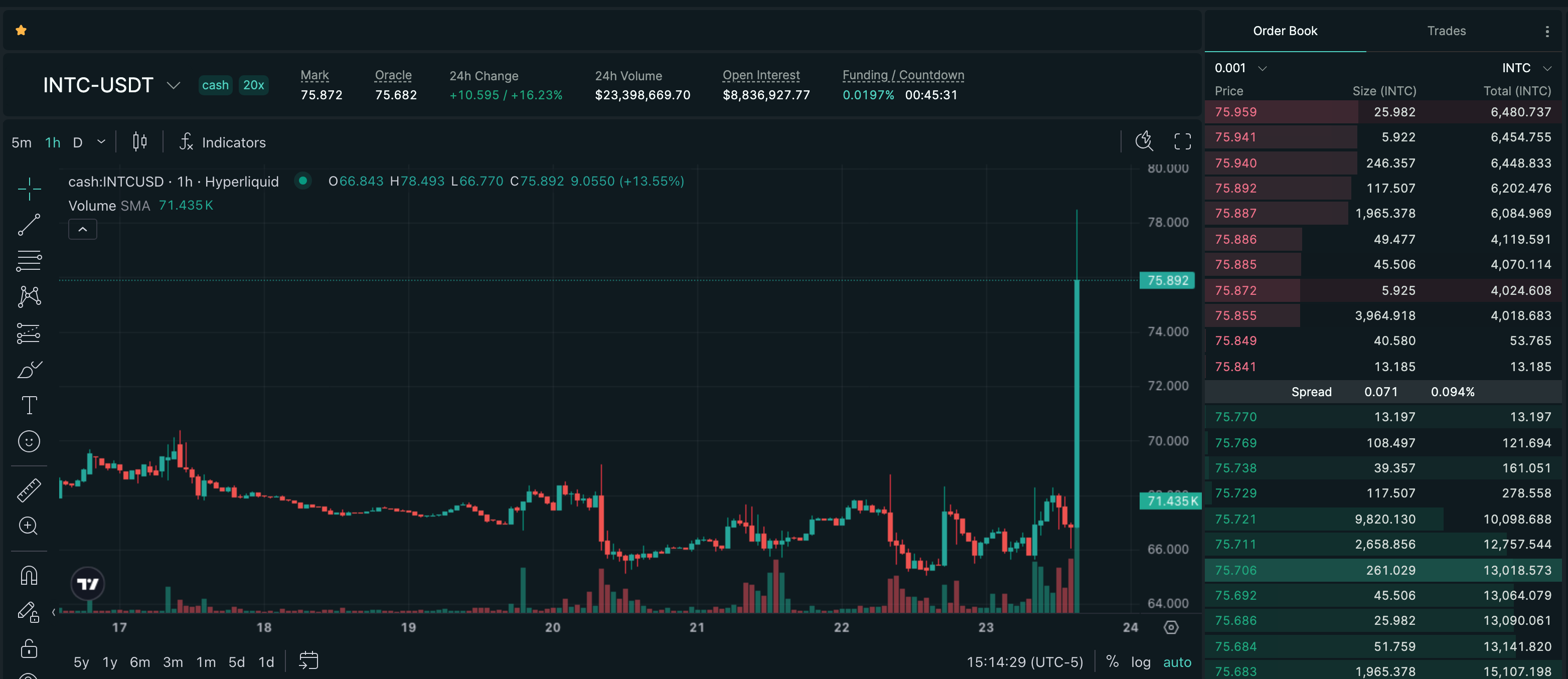 Trade INTC on Hyperliquid with up to 20x leverage.