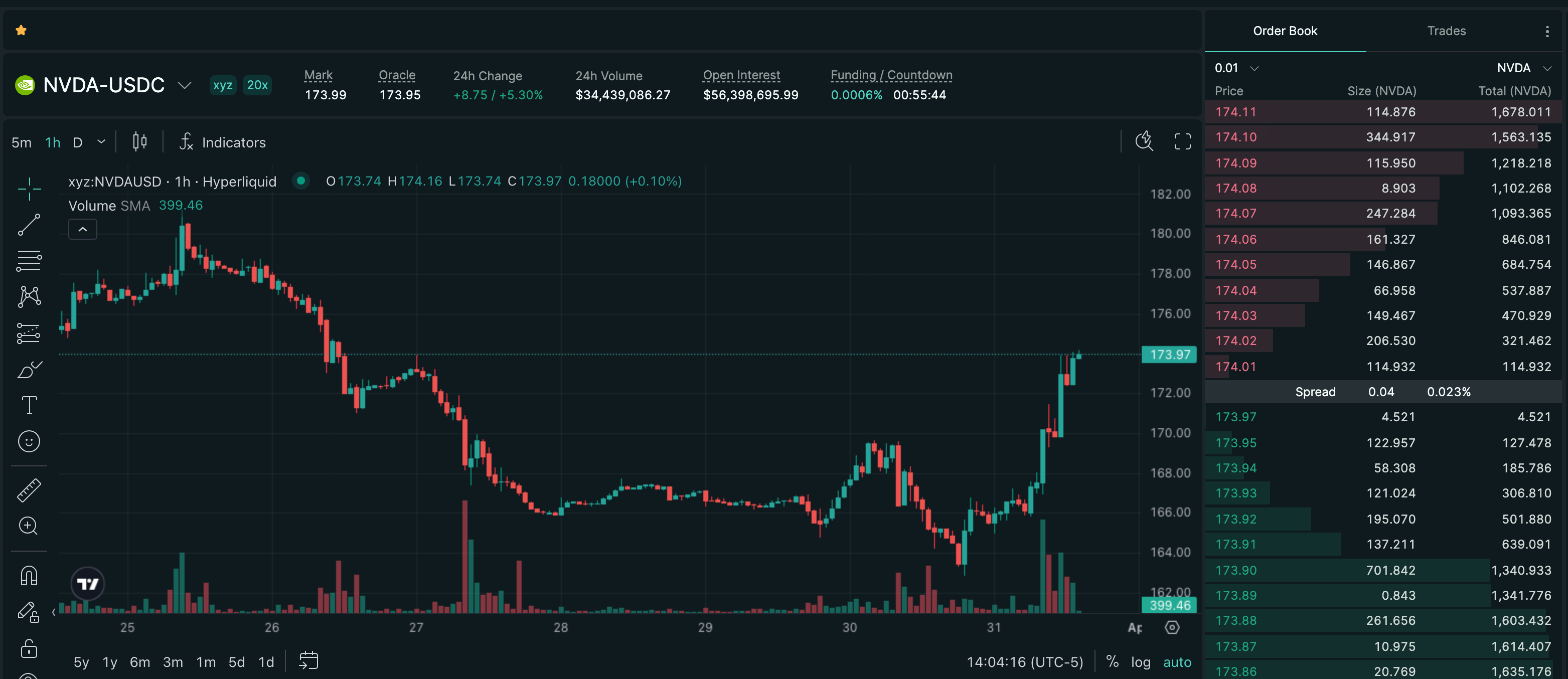 Trade NVDA on Hyperliquid with up to 20x leverage.