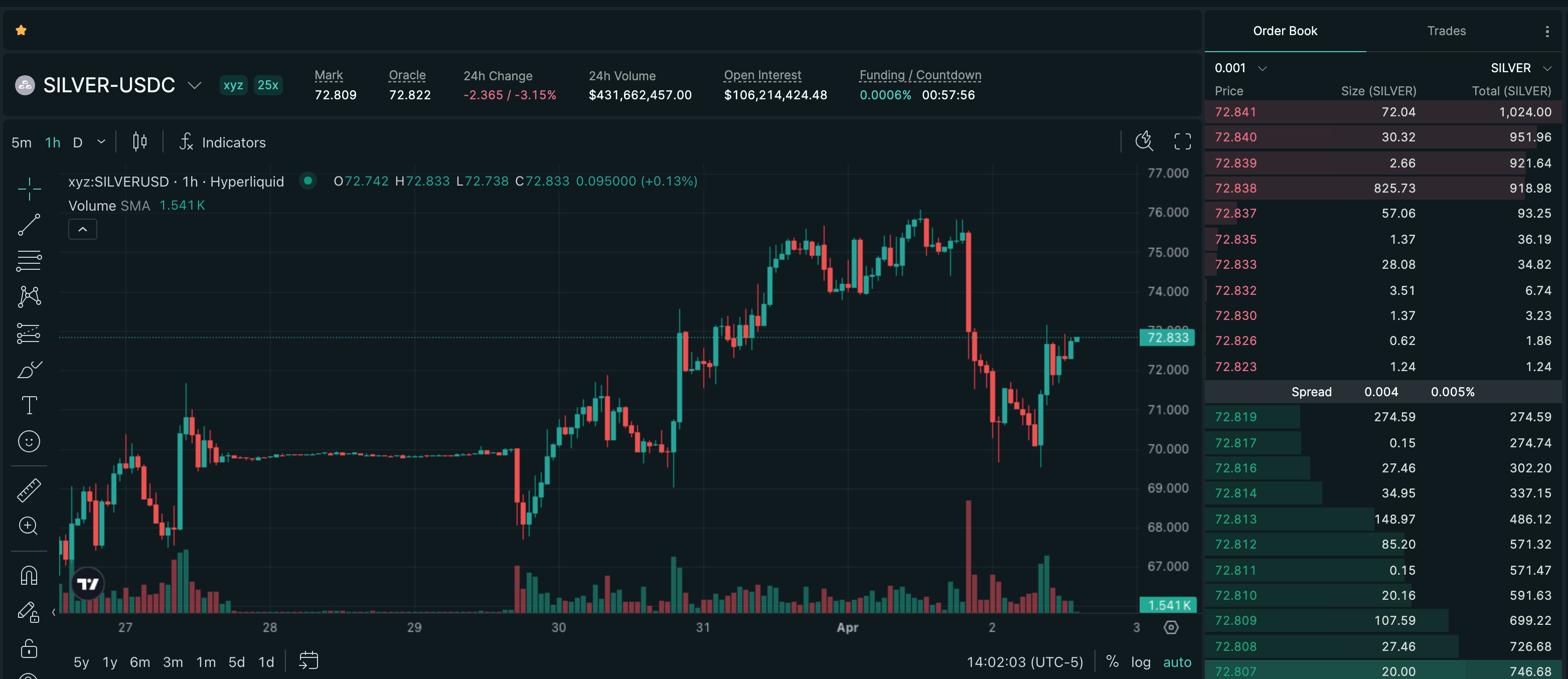 Trade SILVER on Hyperliquid with up to 25x leverage.