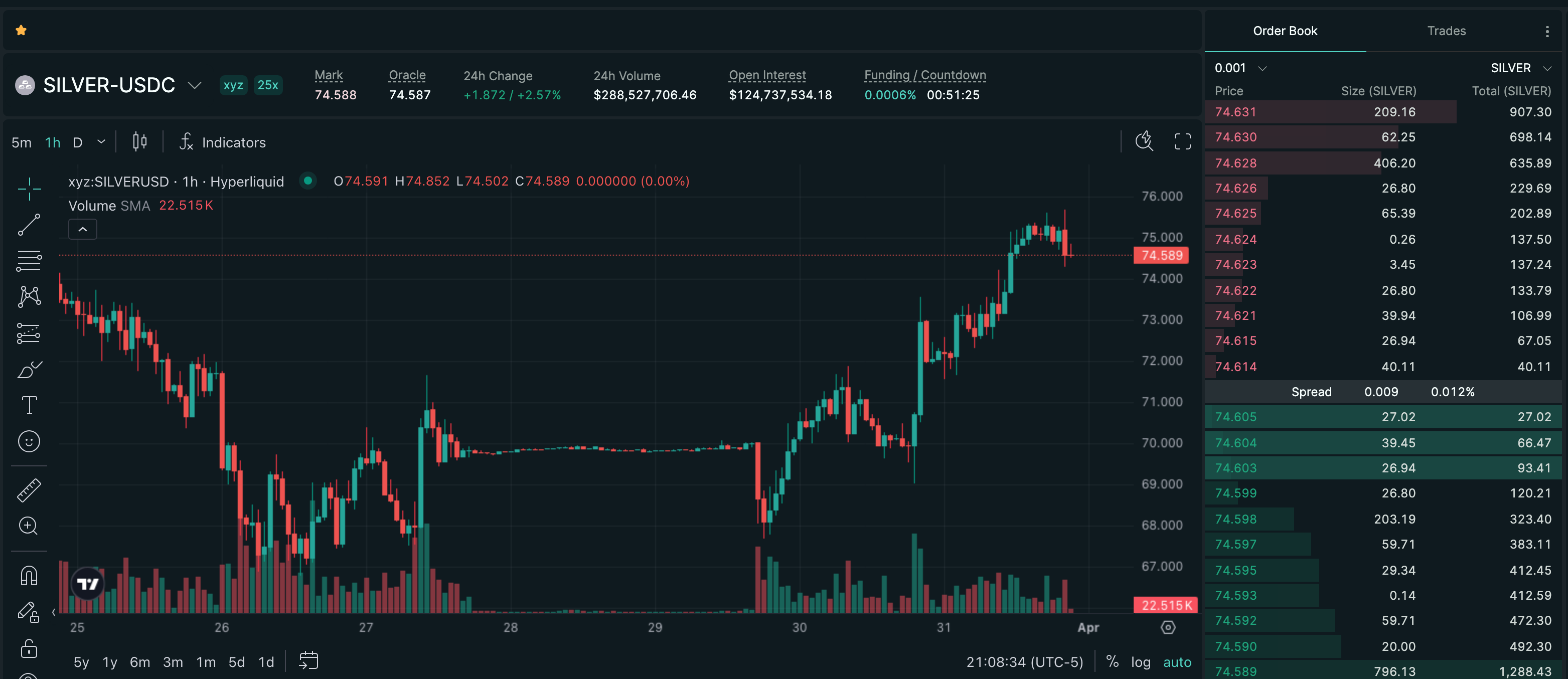 Trade SILVER on Hyperliquid with up to 25x leverage.
