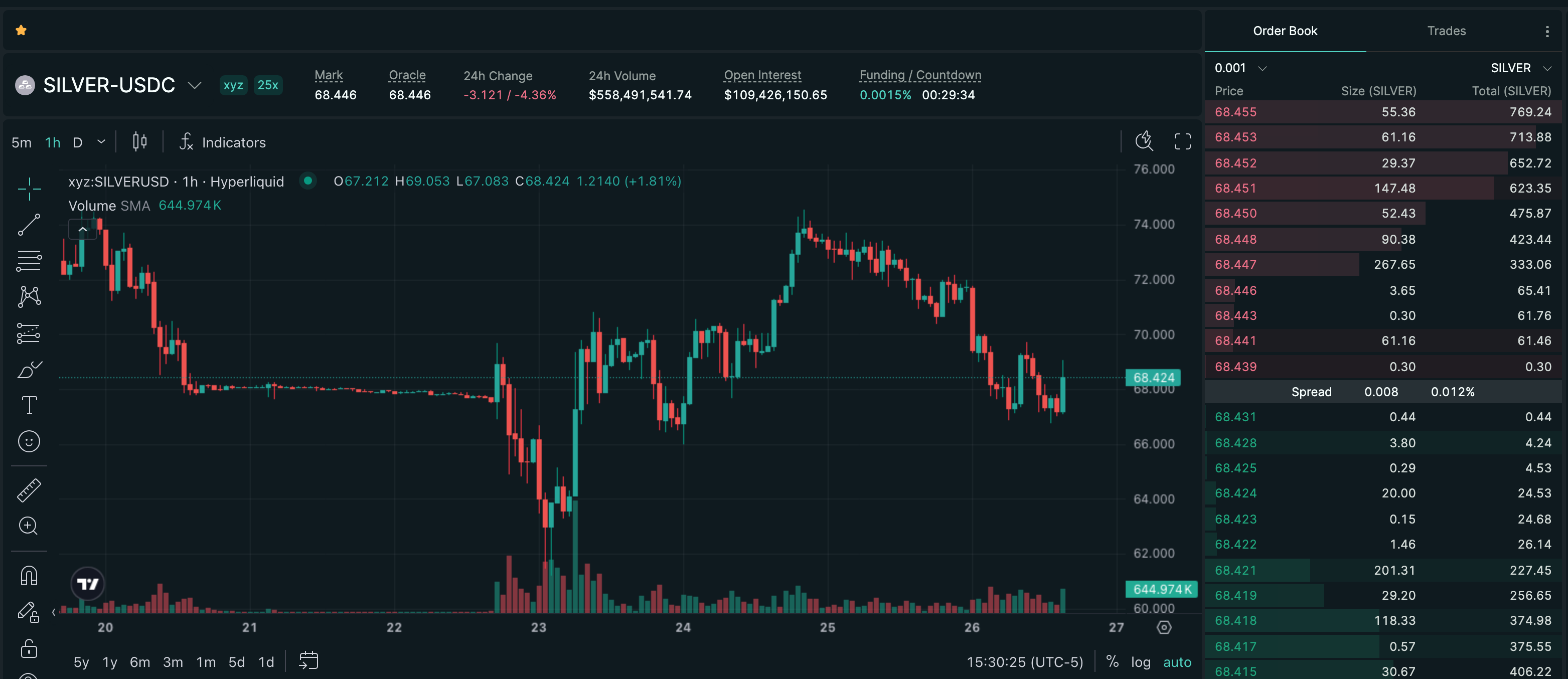 Trade SILVER on Hyperliquid with up to 25x leverage.