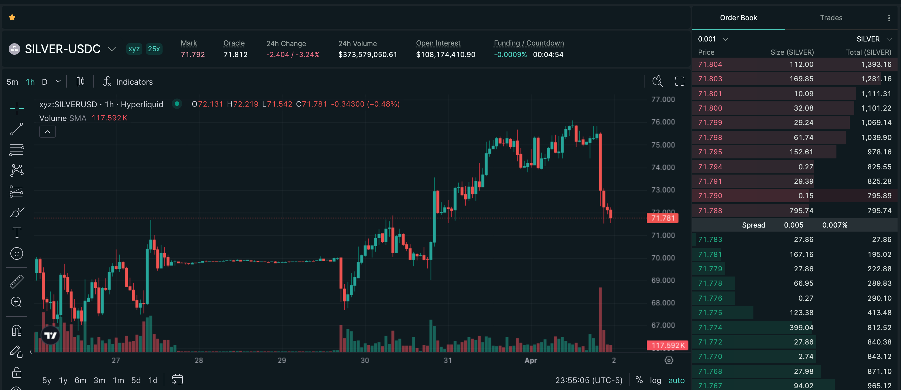 Trade SILVER on Hyperliquid with up to 25x leverage.