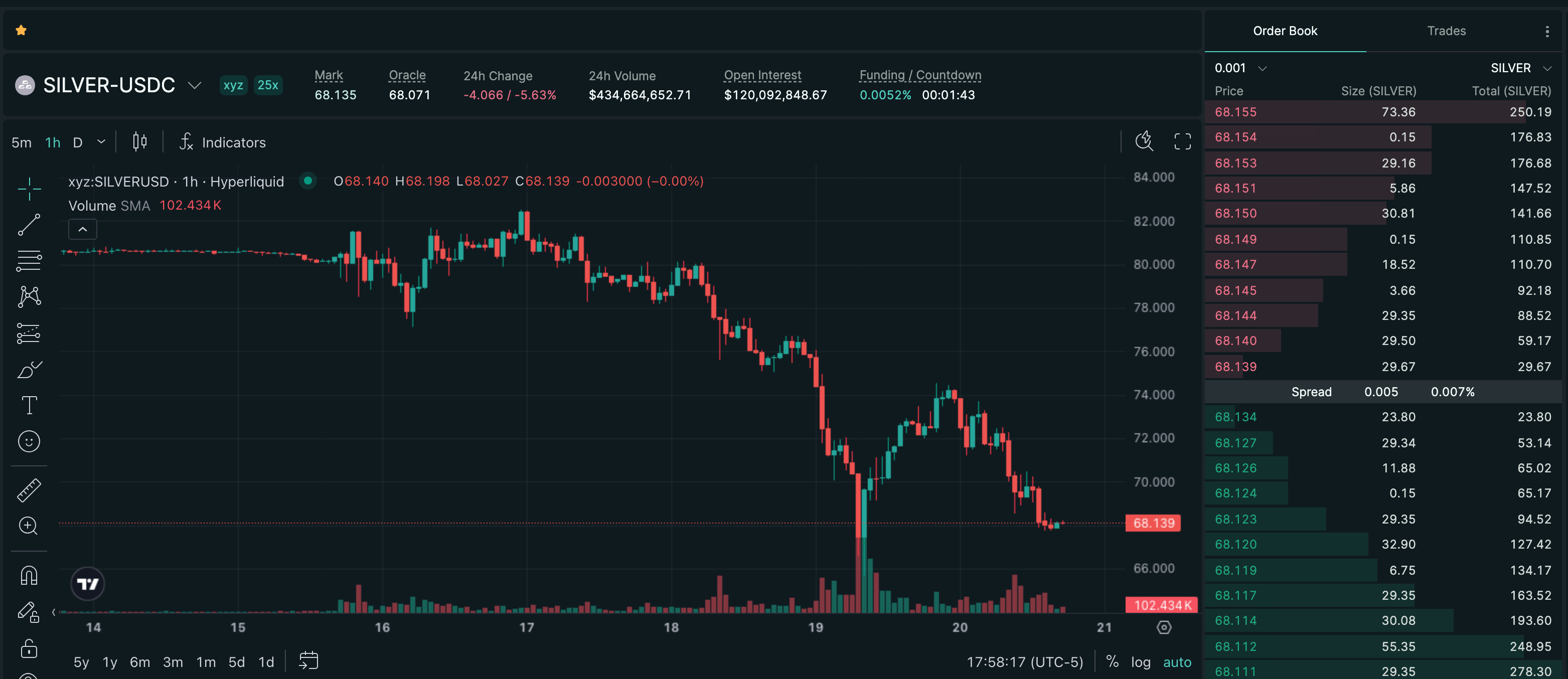 Trade SILVER on Hyperliquid with up to 25x leverage.