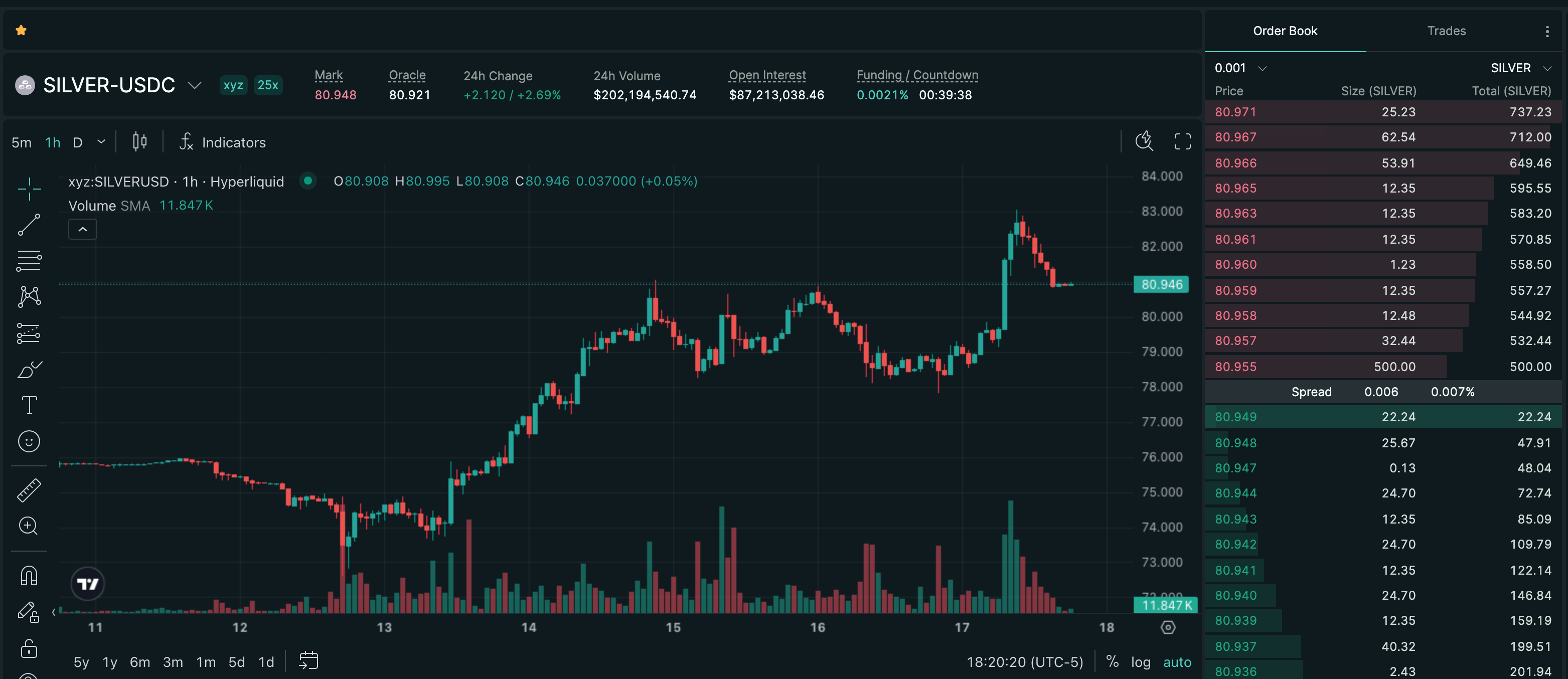Trade SILVER on Hyperliquid with up to 25x leverage.