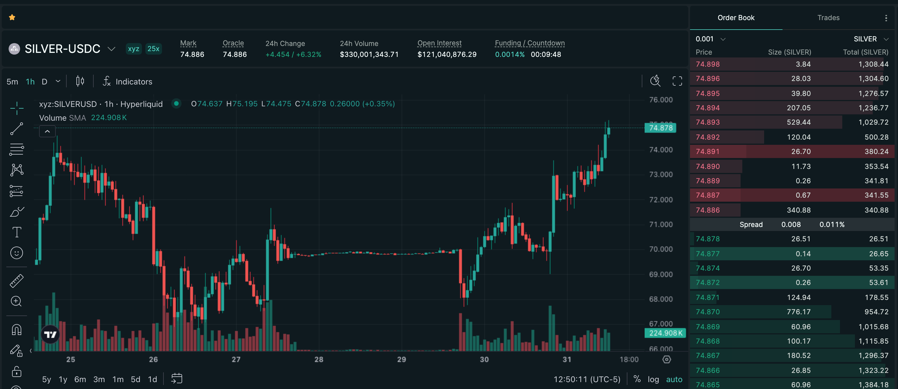 Trade SILVER on Hyperliquid with up to 25x leverage.