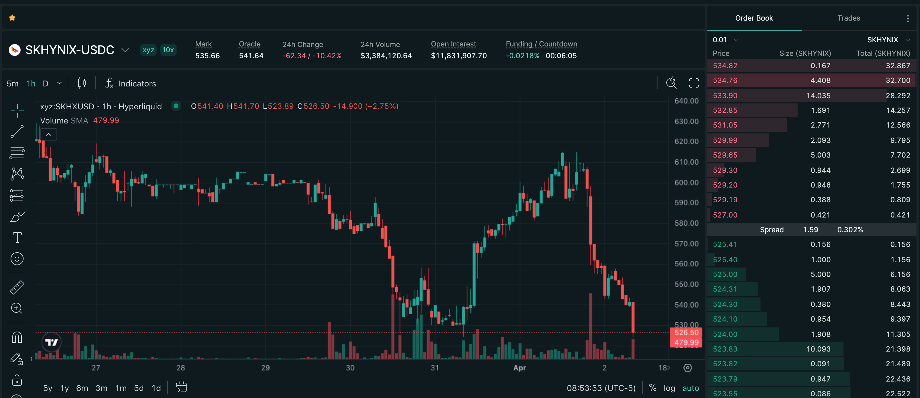 Trade SKHX on Hyperliquid with up to 10x leverage.