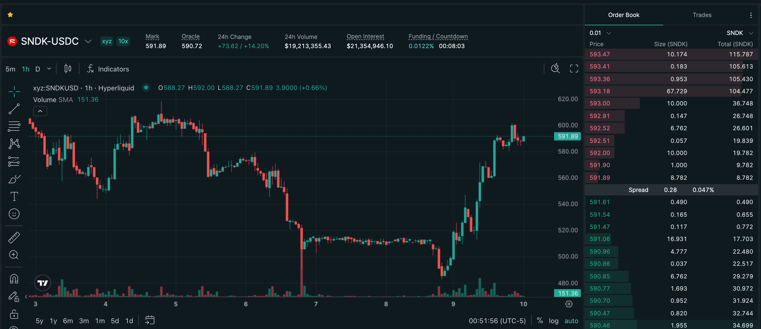 Trade SNDK on Hyperliquid with up to 10x leverage.