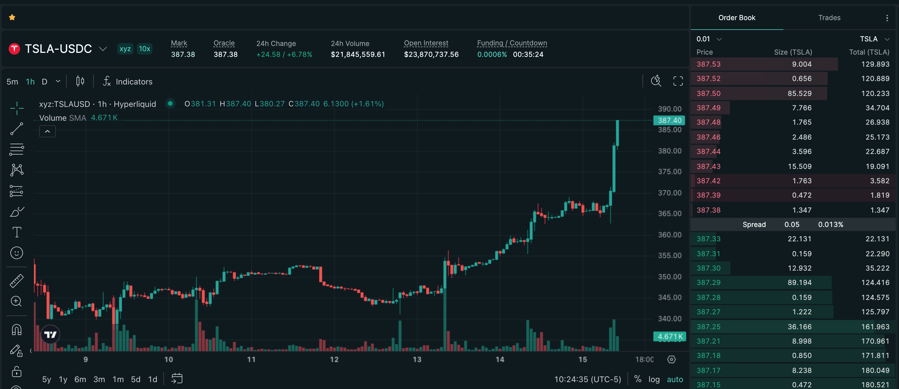 Trade TSLA on Hyperliquid with up to 10x leverage.