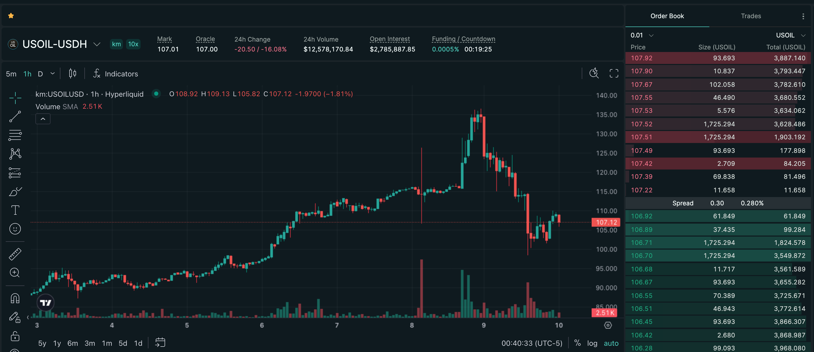 Trade USOIL on Hyperliquid with up to 10x leverage.