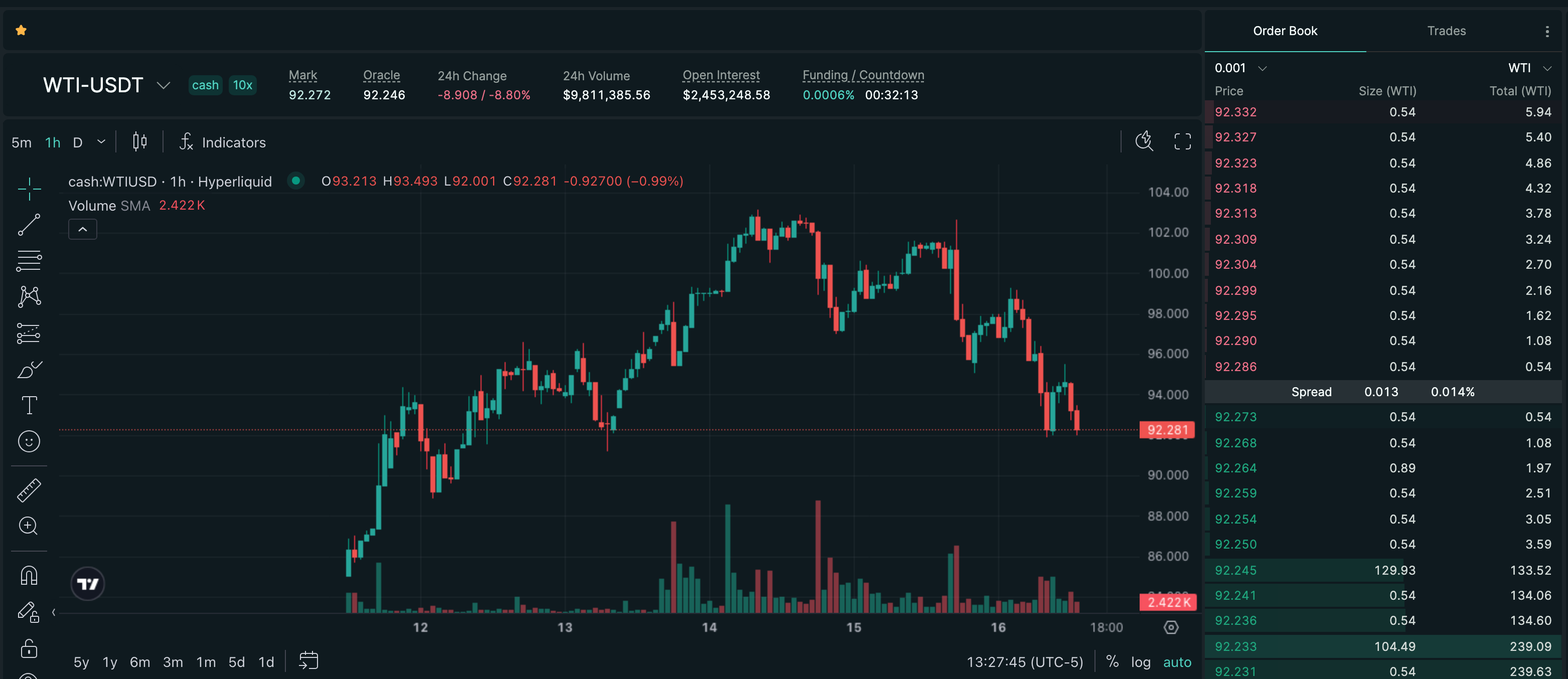 Trade WTI on Hyperliquid with up to 10x leverage.