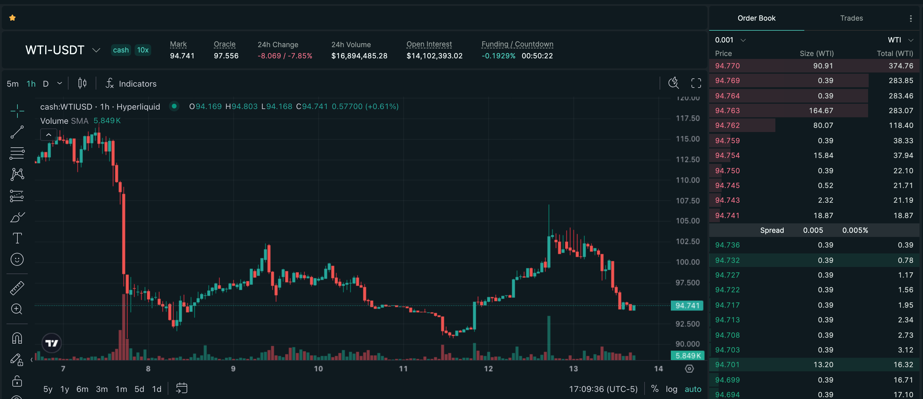 Trade WTI on Hyperliquid with up to 10x leverage.