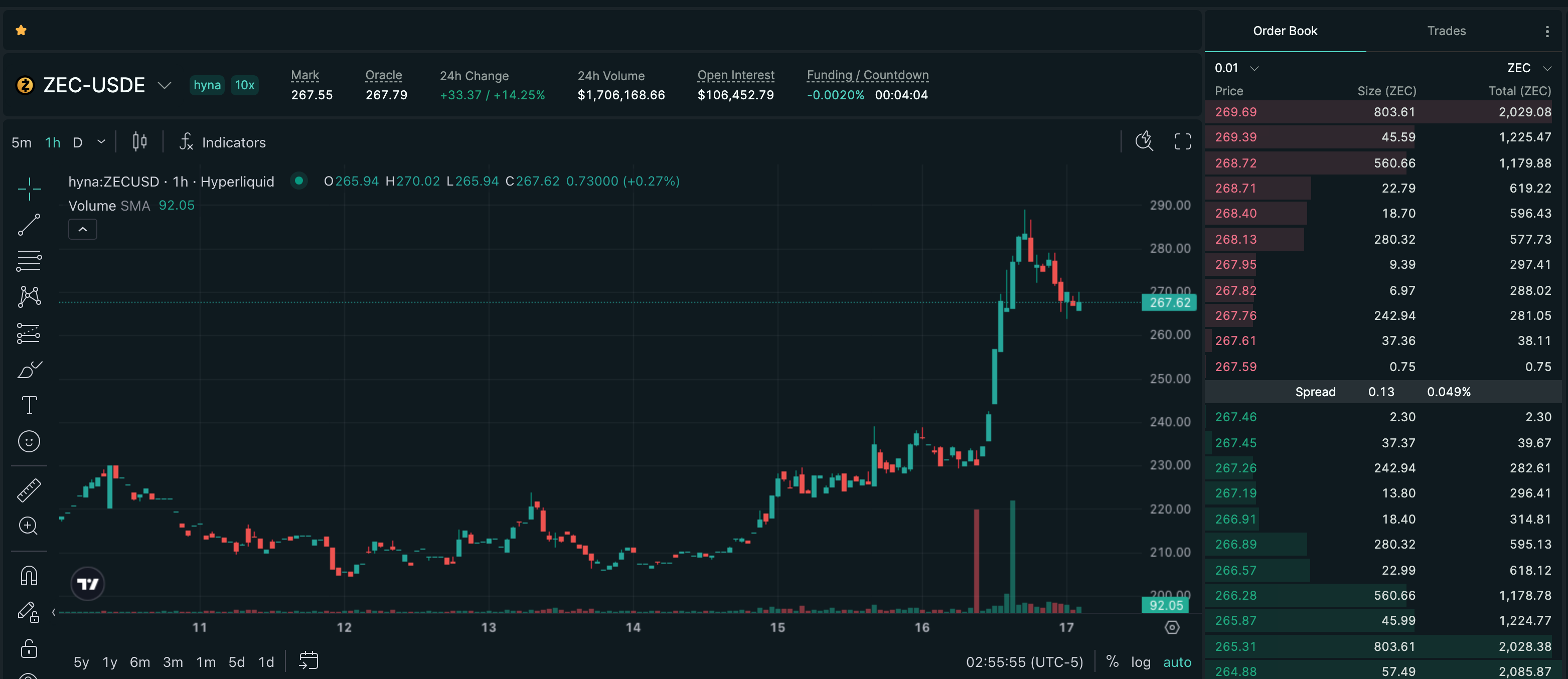 Trade ZEC on Hyperliquid with up to 10x leverage.